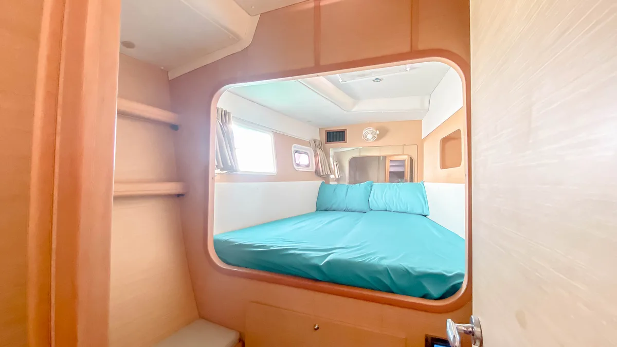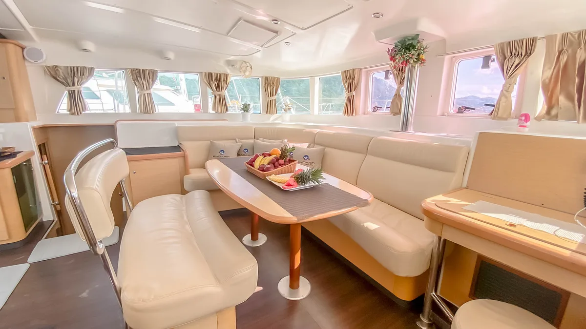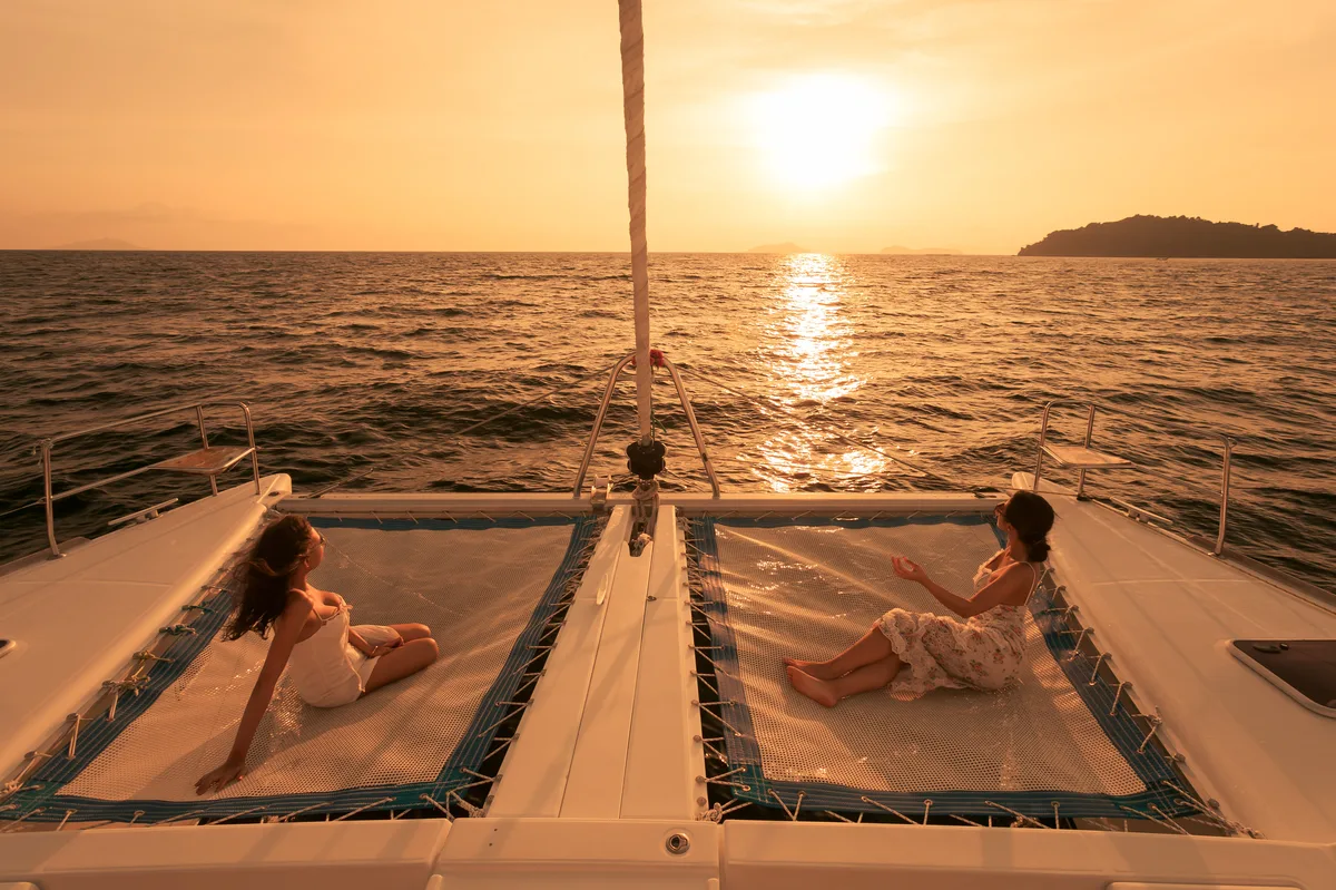 The cockpit is spacious and a great place to enjoy the amazing views and breeze of the Andaman Sea. At the front, the trapezes invite you to relax above the waves.
