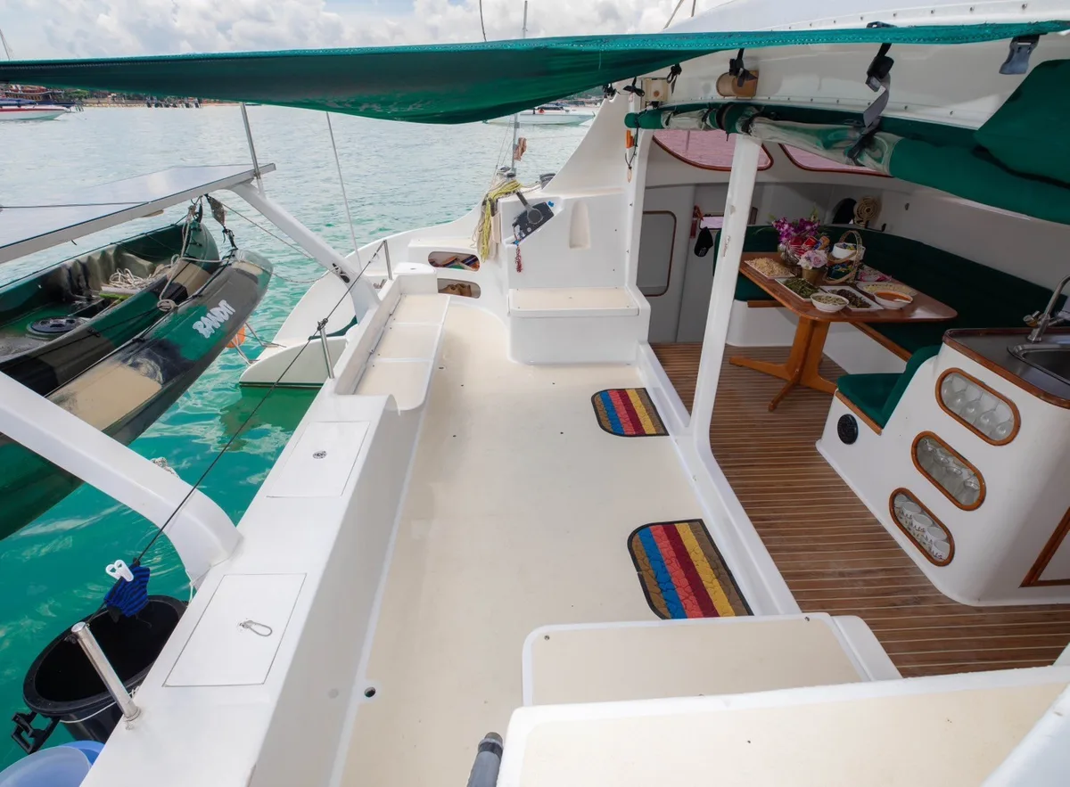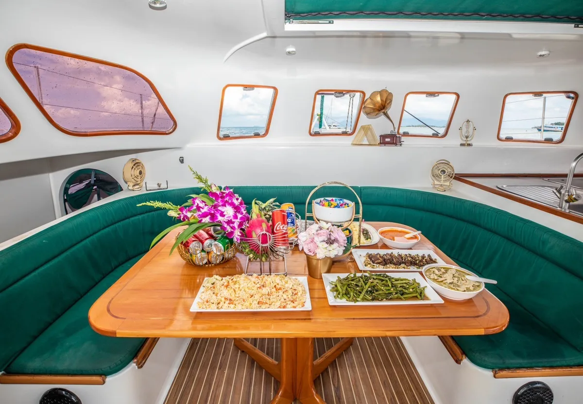 From cozy cabins and smart galley to trampolines and snorkel-ready decks – this is barefoot luxury, Yacht Charter Samui style.