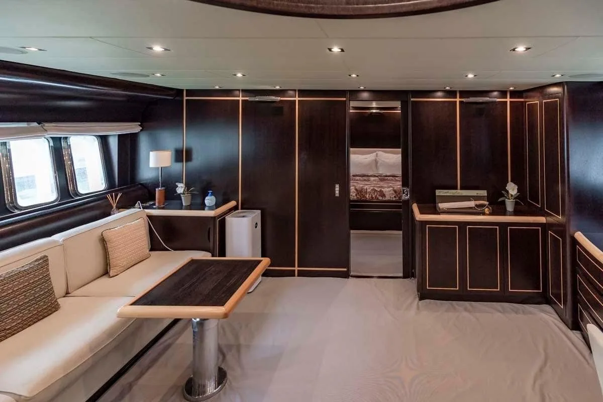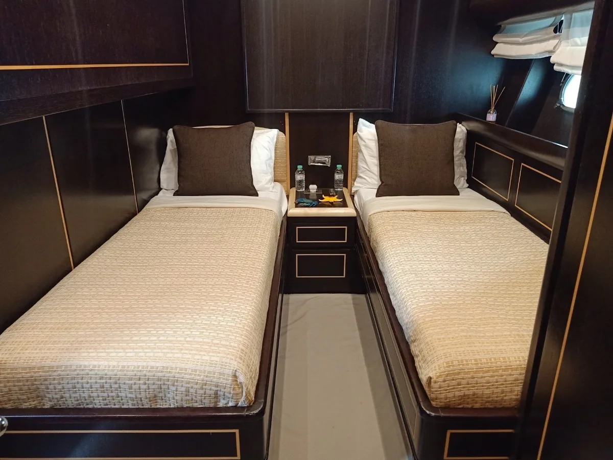 Step on board and you’ll instantly fall in love with every inch of this yacht. From the lavish exteriors designed, to the lush interiors that spell out comfort and luxury, you will automatically feel at home. Its spacious deck provides plenty of opportunities for fun and entertainment, where large groups can celebrate special occasions with style.