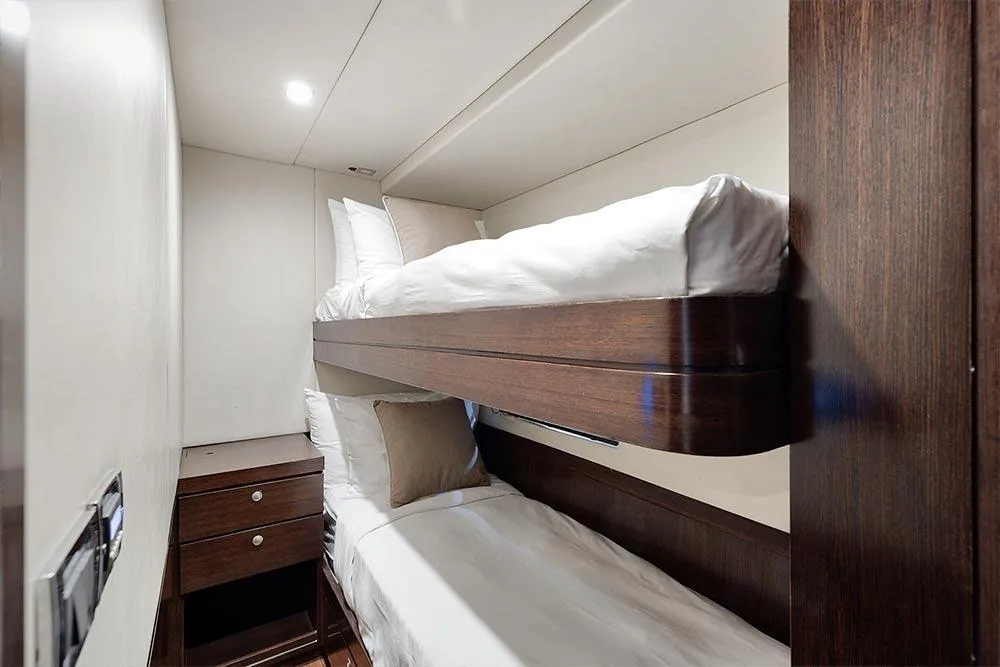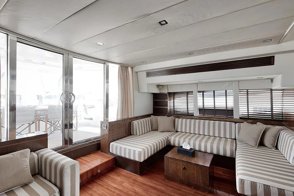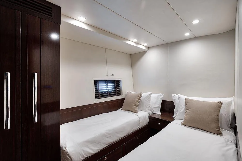 Her spacious fly-bridge guarantees pleasant views of the amazing landscapes. She can accommodate up to 8 guests in 4 cabins with luxurious touches.
