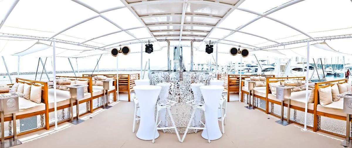 Relax on the comfortable daybeds, jump into the water and snorkel, do laps on the paddle boards, enjoy delicious finger foods and cocktails from the bar, while the resident DJ drives you across the dance floor. Your party couldn't be more perfect!