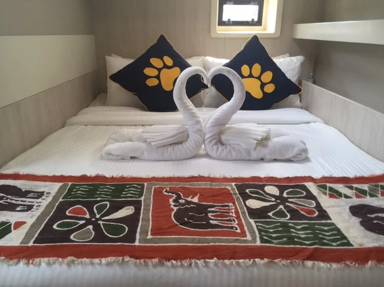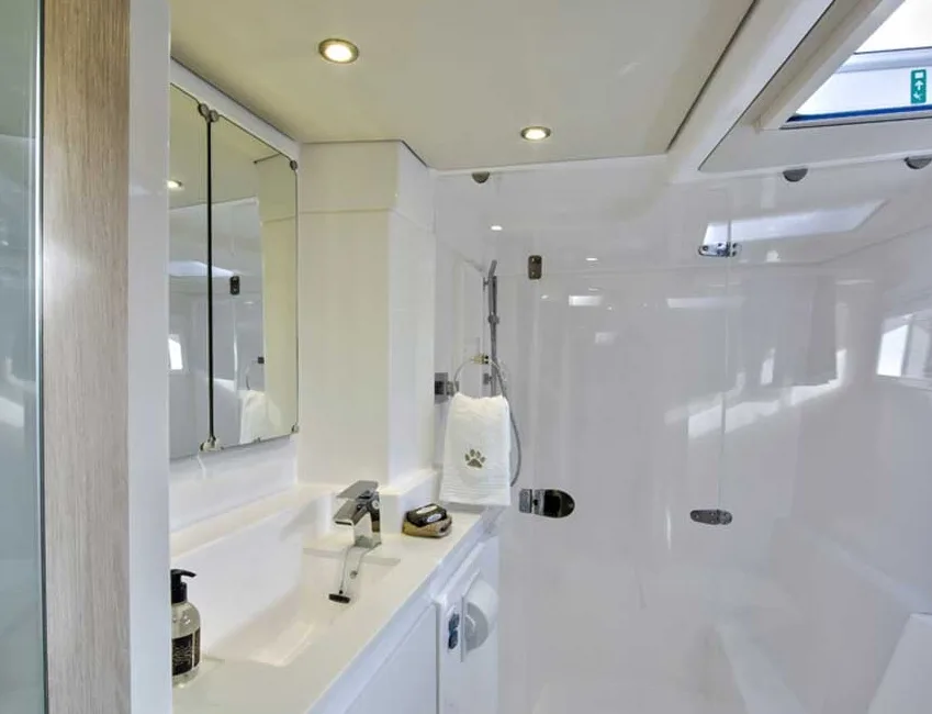 The modern interior runs through all areas including the large air-conditioned cabins with separate shower cells, making the Power Catamara a perfect choice for overnight stays with groups of 6.